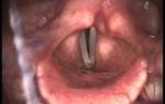 - При хроническом ларингите отмечаются застойный отек, гиперемия, небольшое утолщение слизистой, а в просвете гортани можно увидеть густую слизь.