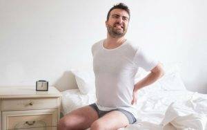 Псориатический артрит в позвоночнике может проявляться болью в бёдрах и болью в спине, которая нарушает сон